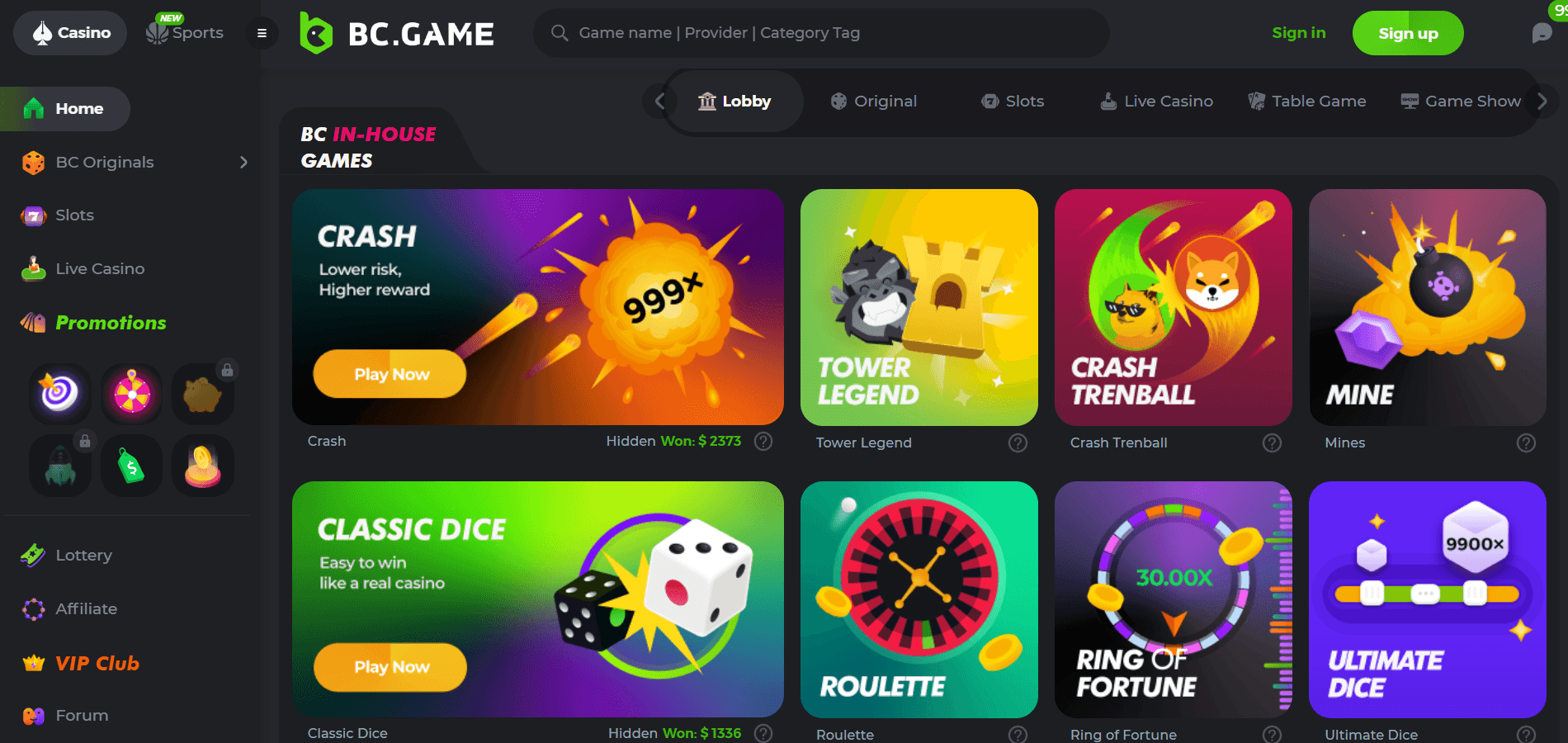 BC.Game ma w swojej ofercie gry od łącznie kilkudziesięciu różnych dostawców. Pod tym kątem katalog BC.Game jest jednym z najciekawszych na rynku, ponieważ oprócz doskonale znanych graczom uniwersalnych deweloperów, kasyno uwzględnia też produkcje od sporej liczby dostawców specjalizujących się w tworzeniu gier na kryptowaluty. Ponadto BC.Game ma też pokaźną gamę swoich oryginalnych produkcji, których gracz nie znajdzie w żadnym innym kasynie ani w portfolio żadnego z powszechnie dostępnych producentów.