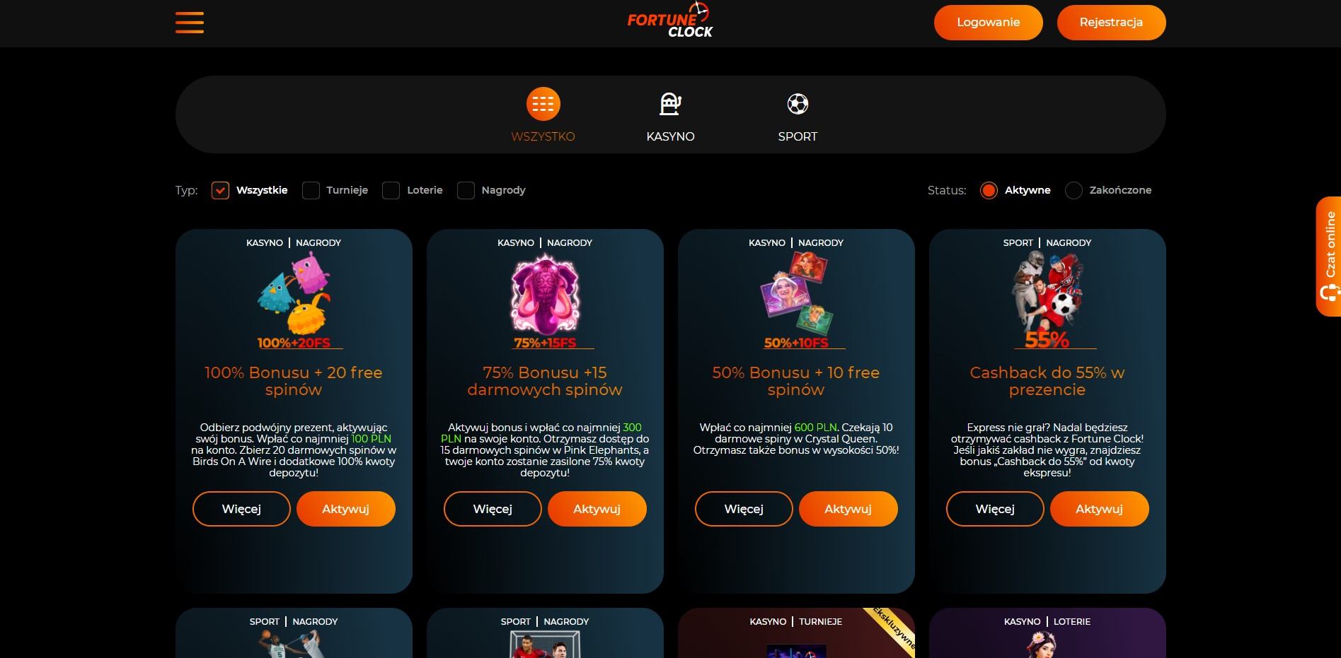 Z Fortune Clock gry online nie straszna jest nuda. Jeden z największych katalogów gier i producentów znajdujących się w jednym miejscu, to coś, o czym warto pamiętać przy wyborze kasyna. Dodatkowo serwis oferuje masę bonusów, promocji, nagród i loterii, w których udział może brać każdy użytkownik portalu. Fortune Clock online to jeden z najbardziej popularnych wyborów dla graczy z polski, nic jednak dziwnego, bo kasyno świetnie zostało dla nich przystosowane. Nie czekaj i przekonaj się sam. Załóż konto gracza w Fortune Clock, zgarnij bonus powitalny i wygrywaj wielkie nagrody.