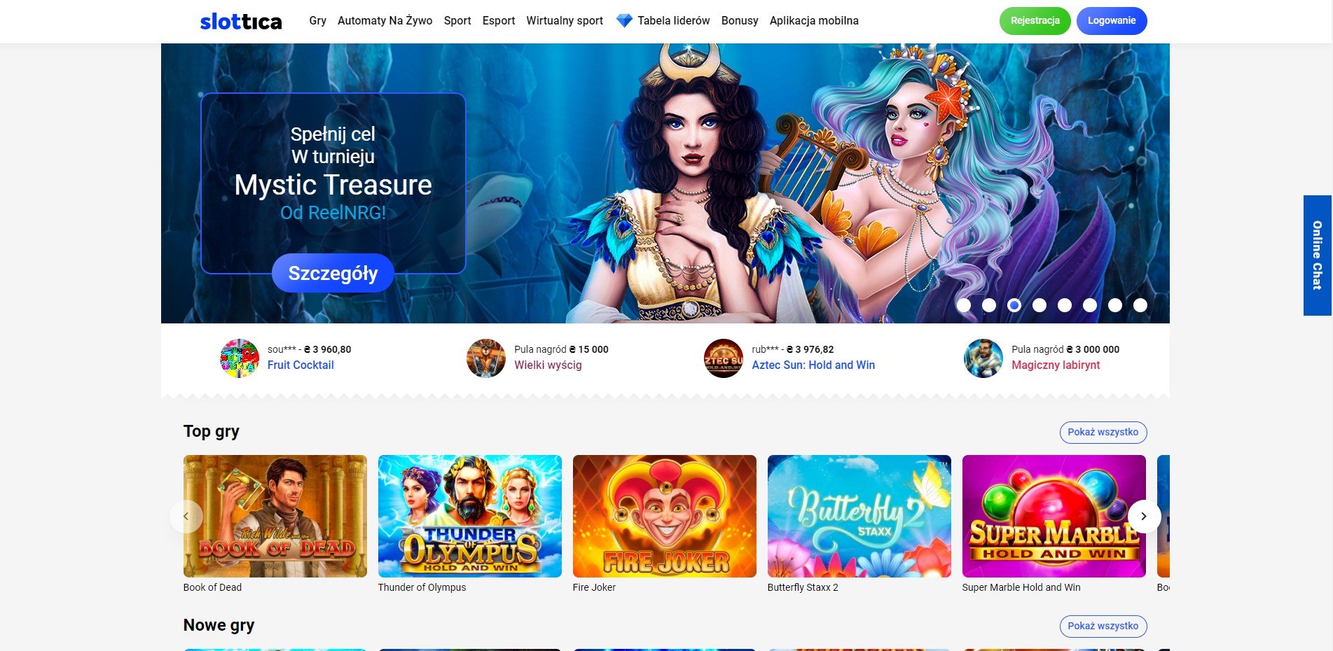 - Slotów do gry, czyli cyfrowych odpowiedników jednorękich bandytów. Slottica sloty to między innymi takie przeboje jak Gonzo’s Quest, Book of Dead, Fire Joker, Starburst, Wolf Gold, czy Demi Gods 2.
