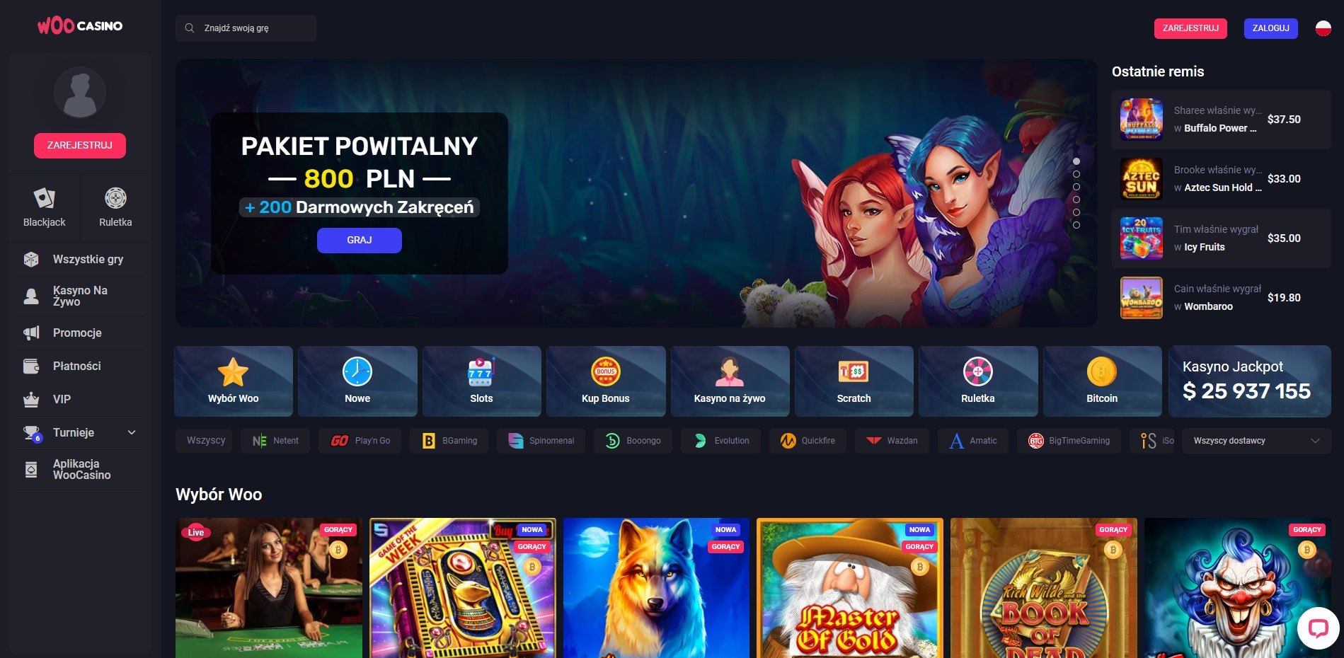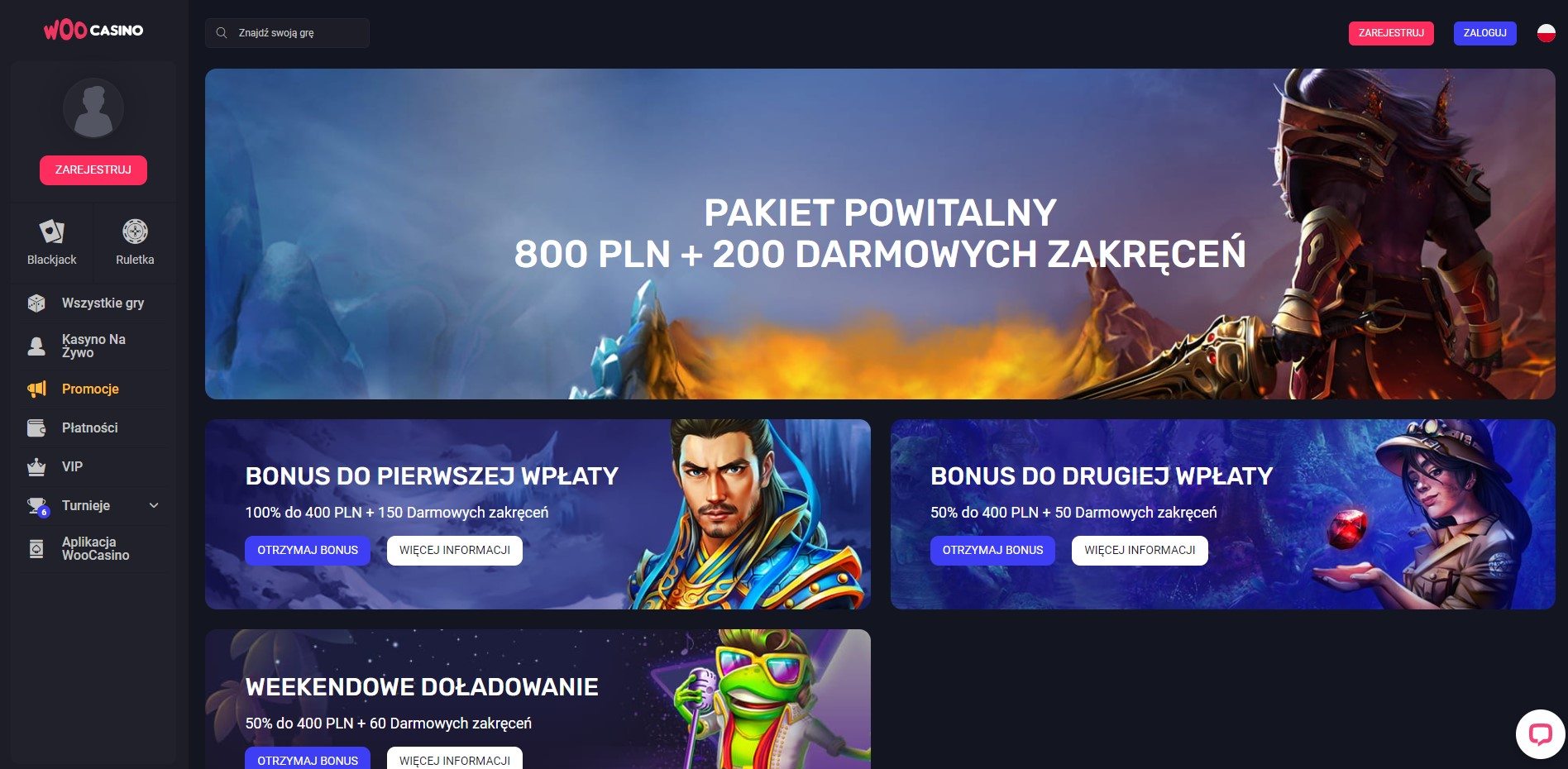 Już samo Woo logowanie sprawia, że możemy się poczuć wyjątkowo, głównie z uwagi na widoczną zakładkę z promocjami i bonusami. Widać, że kasyno lubi rozpieszczać graczy, czego dowodem są cykliczne bonusy i regularne turnieje. Woo nie poprzestaje jedynie na przyznaniu paru bonusów powitalnych. Kolejnym pozytywnym aspektem jest możliwość płacenia bitcoinami, jest to doskonała opcja szczególnie dla tych osób, które cenią sobie anonimowość.